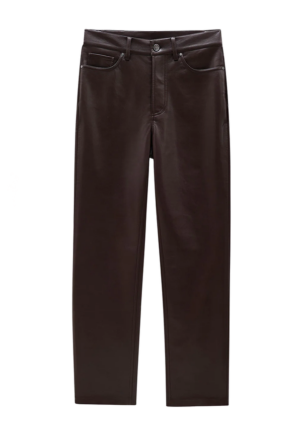Die Bruno Lederhose von Anine Bing in der tiefen Farbnuance Deep Brown verkörpert luxuriöse Coolness mit einem bewussten Touch. Das hochwertige, recycelte Leder-Mix-Material verleiht ihr eine sanfte Struktur und einen leichten Glanz – perfekt, um deinem Look eine elegante Rebellion zu verleihen. Der High-Waist Schnitt und die schlanke, gerade Passform schmeicheln deiner Silhouette und setzen feminine Kurven stilvoll in Szene. Mit klassischem 5-Pocket-Design und dezenter Logo-Applikation ist sie gleichzeitig zurückhaltend und charakterstark. Ein vielseitiges Piece, das du nach Lust und Laune kombinieren kannst – ob casual mit Sneakers oder edgy mit Boots – eine echte Stiloffensive. Sie ist eines dieser It-Pieces im Kleiderschrank, bei dem du dich jedes Mal aufs Neue fühlst wie eine Fashion-Vision 😍.