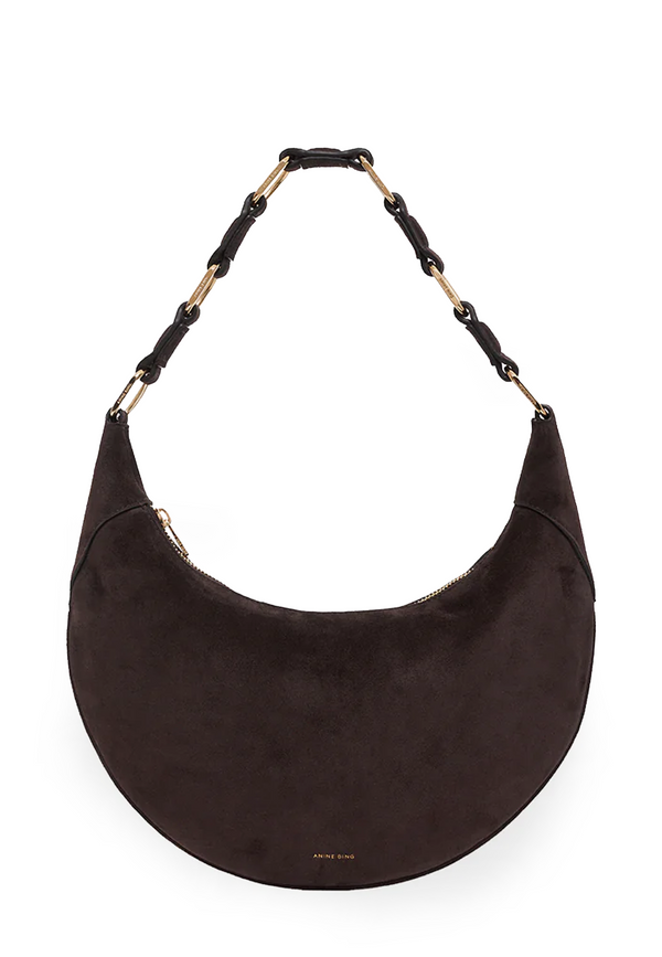 Die Kate Hobo Tasche von Anine Bing in tiefem Dunkelbraun ist pure Eleganz in einer lässigen Form. Das feine Rindsleder fühlt sich butterweich an und kuschelt sich luxuriös an deine Schulter – fast wie ein Lieblingsstück. Der geschmeidige, halbmondförmige Schnitt wirkt modern und entspannt zugleich, während das goldfarbene Gliederband dem Look eine raffinierte, feminine Note verleiht. Innen sorgt die Baumwollbrücke mit Reißverschlussfach dafür, dass deine Essentials stilvoll verstaut bleiben und jederzeit einsatzbereit sind. Ob zum entspannten City-Look oder zum schicken Ensemble – diese Tasche begleitet dich mühelos durch jeden Moment, mit einem Hauch von Glamour 😊. Eine cleane, stilvolle Begleitung für alle, die Understatement mit Struktur lieben ✨.