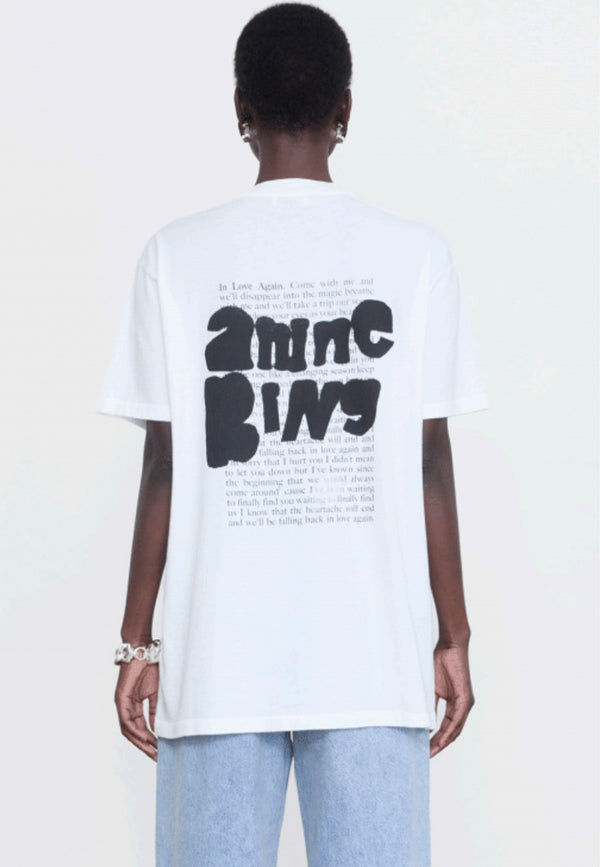 Das Walker T-Shirt von Anine Bing in der Farbe Ivory ist ein echtes Statement-Piece für deine Garderobe. Mit seinem lässigen Oversized-Schnitt und dem einzigartigen Spray-Paint-Design auf der Rückseite verleiht es jedem Outfit eine künstlerische Note. Die handschriftlichen Lyrics auf der Vorderseite fügen einen persönlichen Touch hinzu und machen das Shirt zu etwas ganz Besonderem. Hergestellt aus 100% leichter Baumwolle, bietet es nicht nur Stil, sondern auch höchsten Tragekomfort. Ob zu Jeans, Shorts oder unter einem Blazer – dieses T-Shirt lässt sich vielseitig kombinieren und bringt frischen Wind in deinen Look. Ein Must-have für alle, die Mode lieben und gerne ein Statement setzen 🎨.