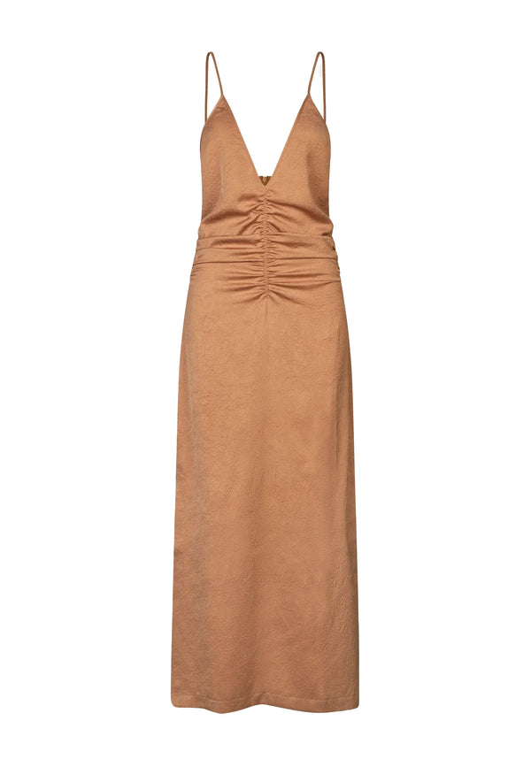 Das Atalia Maxikleid von Baum und Pferdgarten in der warmen Farbe Cinnamon Swirl ist ein zeitlos elegantes Slip-Dress, das mit seinem weich fließenden Satin und den raffinierten Raffungseffekten eine feminine Silhouette zaubert. Der tiefe V-Ausschnitt und die verstellbaren Spaghettiträger betonen dein Dekolleté, während die feinen Drapierungen an der Taille deine Figur schmeichelhaft umspielen. Ein seitlicher Schlitz und der dezente Reißverschluss am Rücken sorgen für einen modernen Touch. Ob mit Sandalen für den Tag oder mit Heels für den Abend – dieses Kleid begleitet dich stilvoll durch jede Gelegenheit. Ein echtes Highlight für deine Garderobe, das Eleganz und Komfort vereint ✨. Lass dich von seiner Leichtigkeit verführen und genieße das Gefühl von Luxus auf der Haut 😊.
