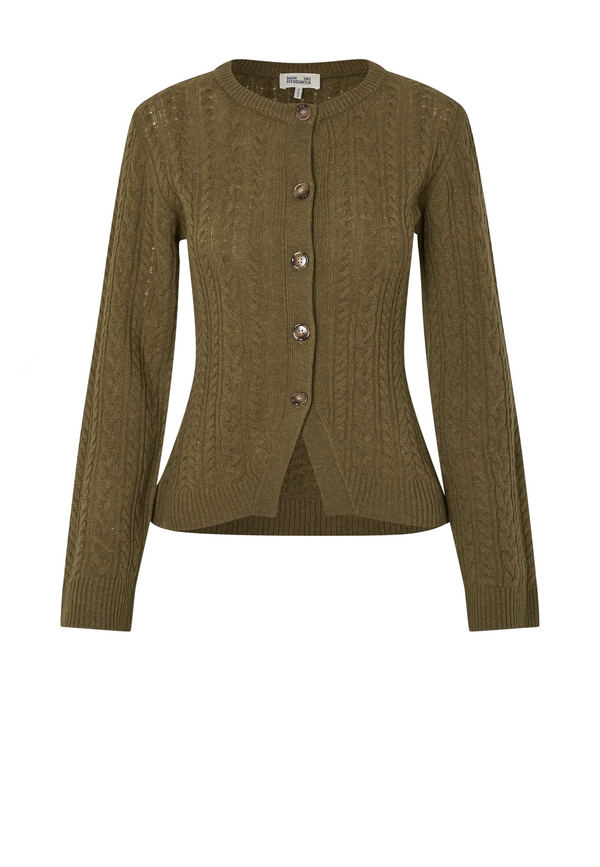 Der Clarah Cardigan von Baum und Pferdgarten in zartem Ivy Green verleiht deinem Outfit eine verspielte Eleganz, ganz wie ein liebevolles Lieblingsstück, das du immer wieder gern trägst. Das feine Zopfmuster in hochwertiger Merinowolle erzählt von klassischer Raffinesse, während die taillierte Passform mit geripptem Kragen, Ärmeln und Saum deinem Look eine feminine Silhouette verleiht. Der charmante Knopfverschluss lädt förmlich dazu ein, ihn offen zu tragen – lässig über einem Kleid oder zu einem eleganten Rock. Stell dir vor, wie du an kühlen Morgen den Cardigan über deine Schultern legst – und sofort fühlt sich alles warm und richtig an 😊. Ein Multitalent für dein Styling: ob im Büro, beim Kaffee-Date oder zum Sonntags-Spaziergang – dieser Cardigan begleitet dich mit unaufdringlicher Klasse. Ein echtes Essential für alle, die skandinavischen Chic mit einer zarten Note erleben möchten.
