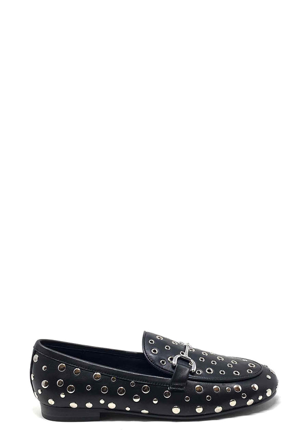 Der Bibi Lou Loafer in Schwarz kombiniert klassischen Chic mit modernem Rock-Appeal. Die edle Loafer-Silhouette wird durch glänzende Nieten und Ösen neu interpretiert und erhält so eine lässig-urbane Note. Mit dem silberfarbenen Horsebit-Detail auf dem Spann bleibt der Look zugleich elegant und zeitlos. Ein vielseitiger Schuh, der sowohl im Büro als auch als stylisches Statement-Piece im Alltag überzeugt.