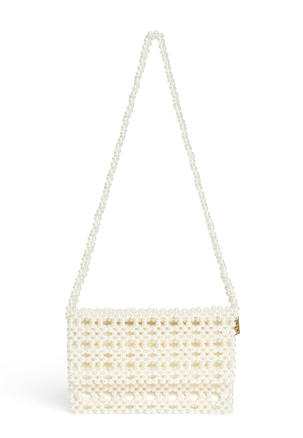 Entdecke die Chaklo Perlentasche von By Malene Birger in strahlendem Soft White – dein neuer Begleiter für glamouröse Nächte und elegante Events. Mit ihrem damenhaften Charme und dem verspielten Design aus schimmernden Kunstperlen ist sie ein echtes Statement Piece, das deine wichtigsten Essentials stilvoll beherbergt. Ein Hauch von Luxus erfährt die Tasche durch den inneren Seidenbeutel mit praktischem Kordelzugverschluss und das dezente Monogramm-Emblem. Egal ob auf einer After-Work-Party oder bei einem besonderen Anlass, mit dieser Tasche ziehst du alle Blicke auf dich. Lass dich verzaubern von der Kombination aus Modebewusstsein und spielerischer Eleganz, die deine Outfits auf das nächste Level heben wird!
