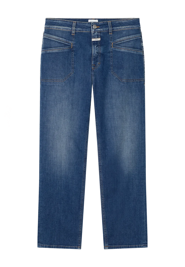 Die Closed Mira-X Straight Fit Jeans in Dark Blue ist ein moderner Denim-Klassiker, der mit seiner klaren Silhouette und dem zeitlosen Dark-Blue-Denim jeden Look veredelt 👖✨. Der Straight-Fit mit mittlerer Bundhöhe sorgt für eine elegante, entspannte Passform, die sowohl casual zu Sneakern als auch chic mit Blazer getragen werden kann. Typisch Closed sind die ikonischen X-Pockets, die nicht nur funktional sind, sondern dem Design auch einen subtilen Signature-Touch geben. Der hochwertige Candiani-Denim mit Stretch-Anteil verleiht der Jeans einen weichen Griff und sorgt für Komfort bei jedem Schritt – ein perfekter Everyday-Style, der lässig und gleichzeitig edel wirkt.
