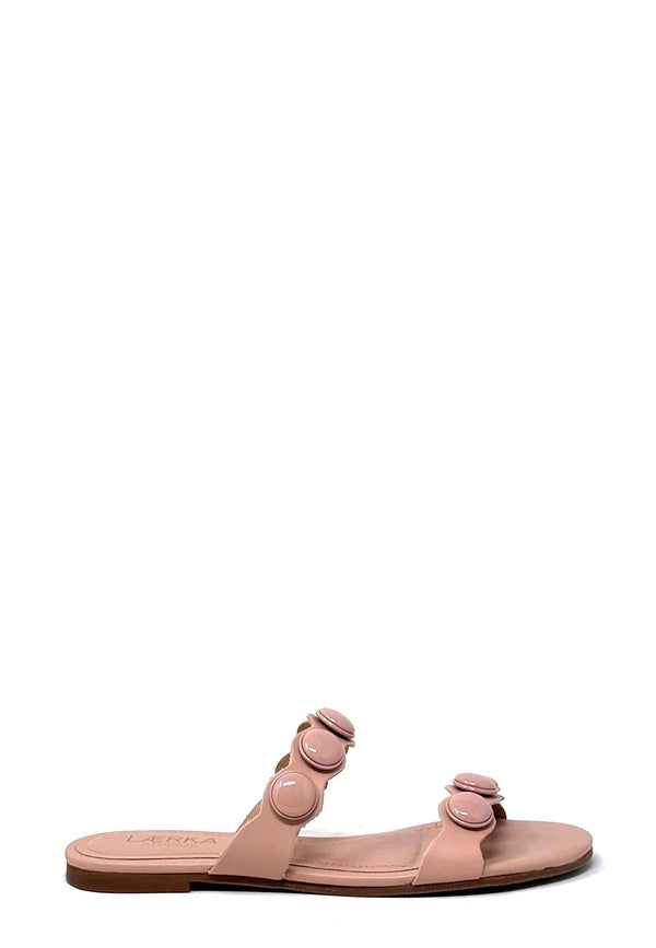 Die Lærka Studios Emily Pantolette in Light Blush ist der Inbegriff von schlichter Eleganz. Zwei feine Riemen aus glattem, rosa Leder umschließen deinen Fuß stilvoll, während dezente, runde, gleichfarbene Steine für einen edlen, modischen Akzent sorgen. Dank der flachen Sohle ist die Pantolette herrlich bequem und perfekt für warme Tage, an denen du mühelos chic unterwegs sein willst. Ob zum Kleid, zur Stoffhose oder Jeans – dieses zeitlose Design passt einfach immer und rundet deinen Look elegant ab.