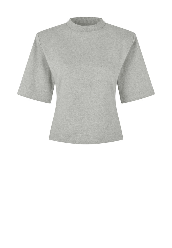 Cool, modern, ein bisschen edgy – das Lana T-Shirt von Oval Square in Grey ist dein neues Style-Essential! 🖤 Die gepolsterten Schultern verleihen dem klassischen Kurzarm-Shirt eine extra Portion Attitude, während der softe, elastische Baumwollstoff für ultimativen Tragekomfort sorgt. Dank der abnehmbaren Schulterpolster mit Druckknöpfen kannst du den Look ganz nach deinem Style anpassen. Der runde Ausschnitt, gerippte Saumdetails und präzise Ziernähte runden das Design ab. Perfekt für lässige Streetwear-Vibes oder als Statement-Piece mit Power! 🚀✨