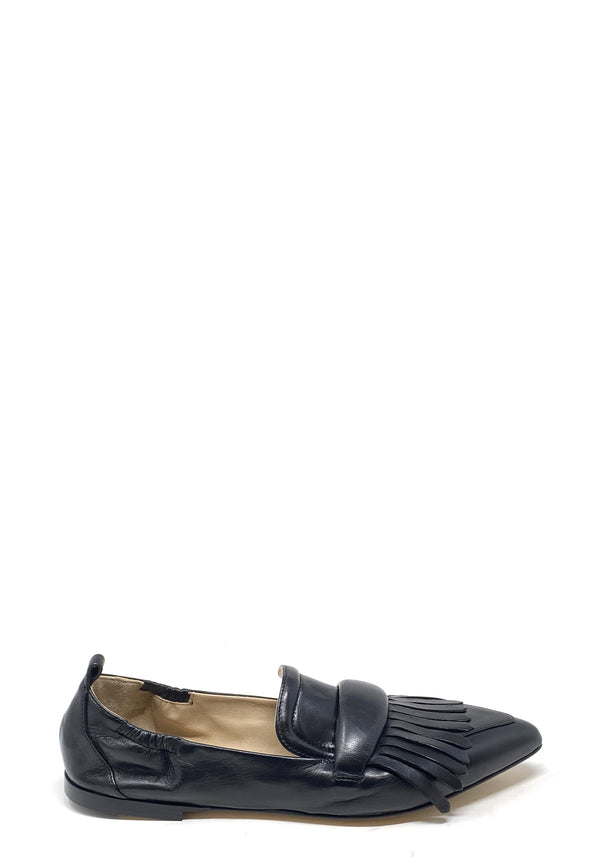 Entdecke den charmanten Pomme D'Or 0956 Loafer in Nero Glove, der aus einem außergewöhnlich weichen Glattleder gefertigt ist – ein Material, das normalerweise den edelsten Handschuhen vorbehalten ist. Die spitze Vorderkappe und der voluminöse Lederriegel mit verspielten Fransen verleihen ihm einen modischen Twist. Ein dezenter Gummizug kurz vor der Ferse sorgt für perfekten Sitz, während die Ledersohle mit ihrem rutschfesten Einsatz am Absatz Komfort und Stil gekonnt vereint. Lass Dich von diesem einzigartigen Loafer verzaubern und setze stilvolle Akzente zu jedem Outfit!