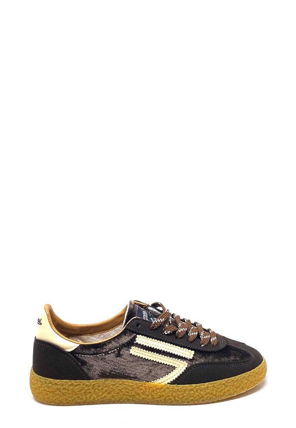 Der Puraai XS Sneaker in Tiramisu Velvet überzeugt mit einem Obermaterial in warmen Braun-Beige-Tönen. Das samtige Finish wird durch dezente used details an den Seiten unterstrichen, was dem Schuh einen markanten, individuellen Charakter verleiht. Abgerundet wird das Design durch zweifarbige Schnürsenkel, die dem Sneaker eine moderne Note geben.