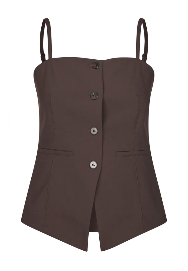 Das Samsøe Samsøe Saclo Top in Black Coffee setzt klare, moderne Akzente mit ausgewählter Eleganz. Der dunkle Kaffee-Ton wirkt sinnlich und zurückhaltend, während der schmale Schnitt mit feinen Trägern und die Knopfverschluss-Front ein filigranes Statement setzen. Zwei aufgesetzte Eingrifftaschen auf der Vorderseite verleihen dem Top eine subtile Note von Utility-Chic, die überraschend stilvoll wirkt 😊. Ob solo mit High-Waist Jeans, unter einem Blazer oder in Kombination mit einem femininen Rock – das Saclo Top bringt Leichtigkeit und eine hochwertige Ausstrahlung in deinen Look.