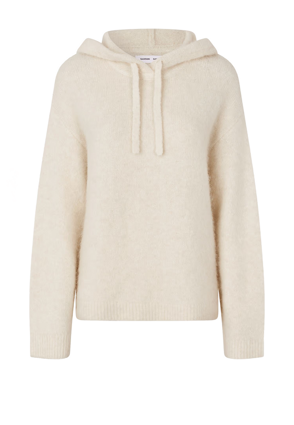 Samsøe Samsøe – Sajeanne Hoodie in Clear Cream – ein lässig-eleganter Stricktraum mit Kapuze, der dich sanft umfängt und modisch strahlen lässt. Der Oversize-Cut mit tiefen Schultern, die Kordel in der Kapuze und die feinen Rippbündchen verleihen dir einen klaren, modernen Look mit cozy Charme – perfekt für stylishe City-Momente oder entspannte Tage zu Hause.