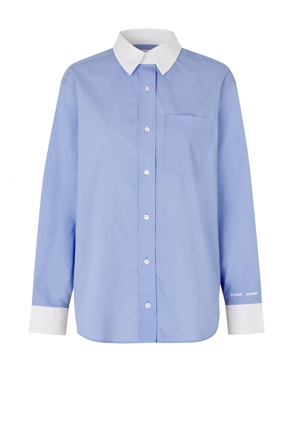 Die Samsøe Samsøe Salova Oversized Pocket Bluse in Bel Air Blue ist deine neue Lieblings-Bluse mit urbanem Casual-Charme und skandinavisch klarer Leichtigkeit 🌊💙. Der entspannte, oversized Schnitt mit überschnittenen Schultern sorgt für einen lässigen Look, der sich mühelos zu Jeans, Tailored Pants oder Midirocken kombinieren lässt. Klassische Knöpfe vorne, eine aufgesetzte Brusttasche und das zarte Samsøe-Branding am Ärmel setzen feine, moderne Akzente — ein vielseitiges Piece, das du vom Büro bis zum Wochenende stilvoll tragen kannst.