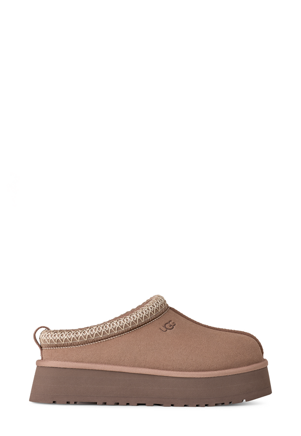 Der Tazz II Clog von UGG in der warmen Nuance Rocky Oak vereint kuscheligen Luxus mit coolem Street‑Style. Das Obermaterial aus weichem Veloursleder trifft hier auf flauschiges UGGplush‑Futter – dein Fuß wird sofort in eine Wohlfühloase gehüllt. Die 4 cm hohe Plattformsohle aus Zuckerrohr‑EVA sorgt für federnden Komfort und einen selbstbewussten Auftritt. Das Flecht-Detail und das dezent geprägte Logo verleihen dem Clog ein verspieltes, aber edles Finish. Ob zu Jeans, Minikleid oder Lounge-Look – dieser Schuh macht jeden Look gemütlich stylisch 😊. Ein Must-have, wenn du Komfort nicht missen, aber dabei nicht auf Fashion-Power verzichten möchtest ✨.