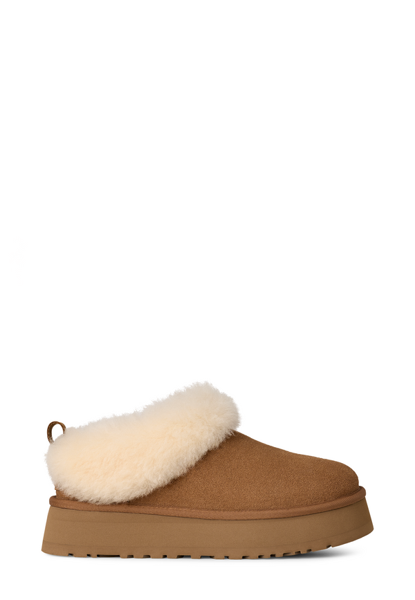 Der UGG Tazzelle Clog in der Farbe Chestnut ist der Inbegriff von Komfort und Stil. Mit seinem offenen Design und der flauschigen UGGplush™-Wollmischung bietet er ein unvergleichliches Tragegefühl, das sowohl drinnen als auch draußen begeistert. Das Obermaterial aus hochwertigem Wildleder in der warmen Chestnut-Nuance verleiht dem Slipper eine zeitlose Eleganz. Die leichte Plattformsohle sorgt für zusätzliche Dämpfung und unterstützt jeden Schritt mit Leichtigkeit. Ob für einen entspannten Tag zu Hause oder einen lässigen Stadtbummel – dieser Slipper ist der perfekte Begleiter für stilbewusste Frauen, die Wert auf Qualität und Komfort legen. Kombiniere ihn mit Jeans, Leggings oder einem fließenden Kleid für einen mühelosen, aber dennoch modischen Look. Lass dich von der Kombination aus traditioneller Handwerkskunst und modernem Design verführen – der Tazzelle Clog ist ein Must-have für jede Garderobe.