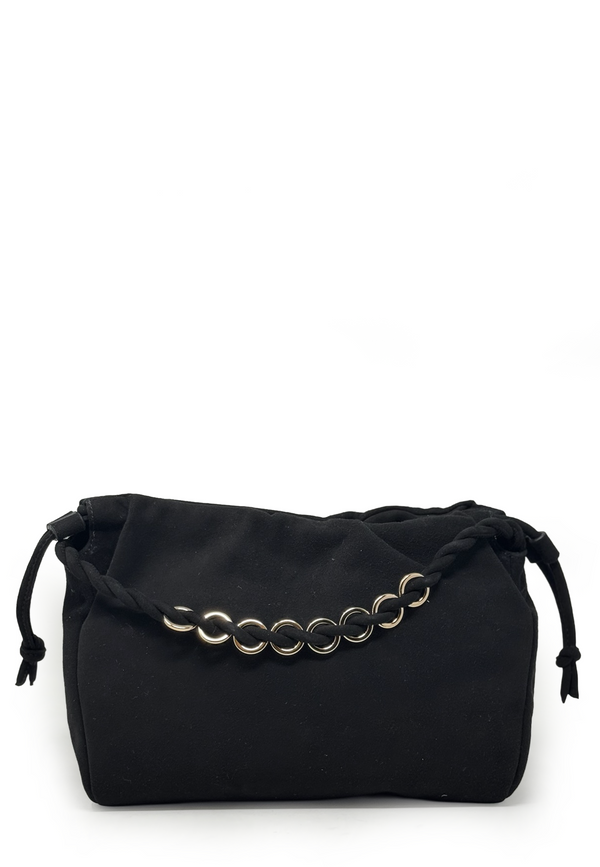 Die Unisa Zbambo Tasche in Black Suede ist ein elegantes Essential für jeden Tag, das durch ihr softes Veloursleder und die geflochtene Ketten-Optik sofort ins Auge fällt. Das kompakte, weich gepolsterte Design wirkt lässig und zugleich unglaublich edel, während die silberfarbenen Metallringe dem Look eine moderne Note verleihen. Besonders schön ist die wandelbare Trageoption: Du kannst sie als Clutch oder mit dem abnehmbaren Schulterriemen crossbody stylen 😊. Der praktische Zugbandverschluss hält deine Essentials sicher verstaut und verleiht der Tasche ihren charakteristischen Beutel-Look. Ob zu Jeans, Kleid oder Blazer – diese Tasche bringt jeden Look auf ein neues Fashion-Level.